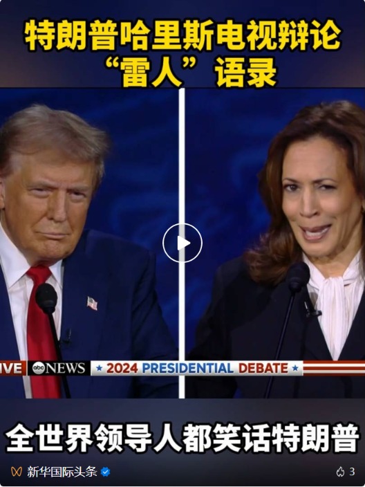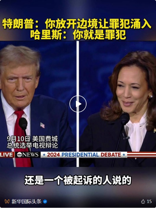 据新华国际头条11日报道,当地时间10日晚,美国民主党总统候选人、副总统哈里斯和共和党总统候选人特朗普在费城展开首场电视辩论。现场两人火力全开,互攻弱点,在针对移民、外交等问题的问答环节“雷语”频出。