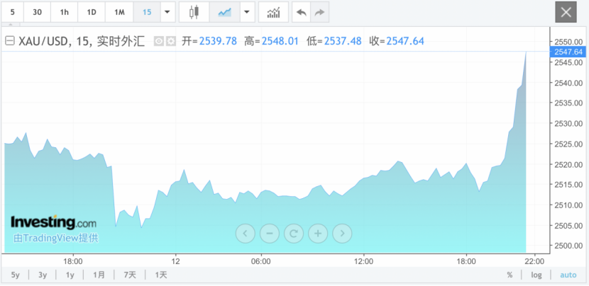 12日晚间,现货黄金价格持续飙升,突破2540美元/盎司,创历史新高,截至发稿,涨幅为1.28%;现货白银日内大涨2.3%,现报29.34美元/盎司。