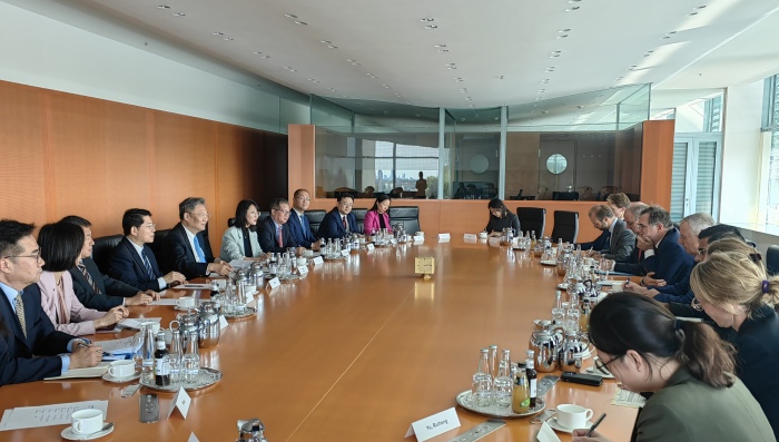 9月17日,商务部部长王文涛在柏林会见德国总理府部长施密特。双方重点就欧盟对华电动汽车反补贴案等议题进行深入交流。中国驻德国大使邓洪波参加会见。
