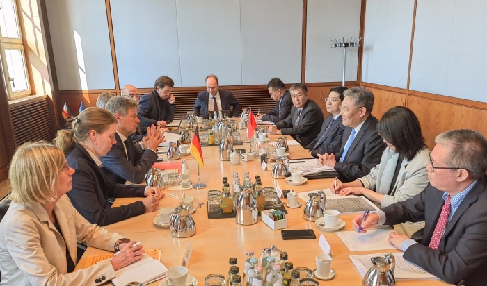 9月17日,商务部部长王文涛在柏林会见德国副总理兼经济和气候保护部部长哈贝克。双方重点就欧盟对华电动汽车反补贴案等议题进行深入坦诚交流。中国驻德国大使邓洪波参加会见。