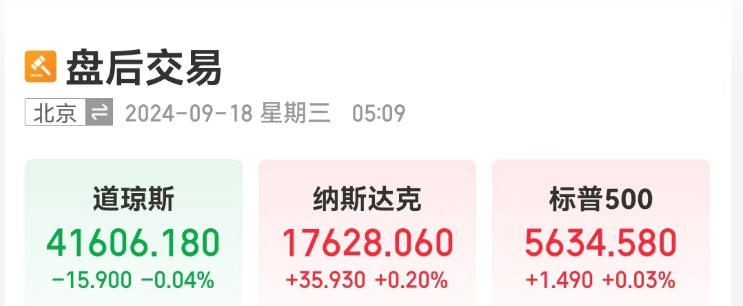 当地时间9月17日,美股三大指数收盘涨跌不一,纳指涨0.20%,标普500指数涨0.03%,盘中创出历史新高,道指跌0.04%,市场等待美联储利率决议。