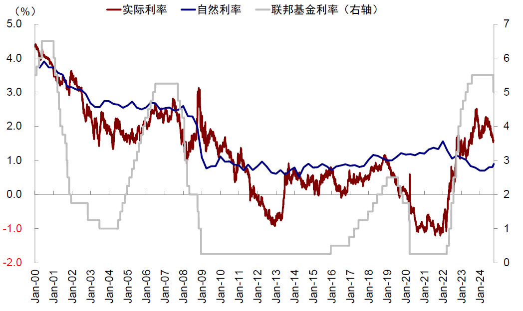 9月降息50bp后,美联储“点阵图”显示年内有50bp,整轮周期到2026年有200bp的降息空间,与CME期货预计年内有75bp、2025年9月降200bp的预期存在明显分歧,后者更为激进。那么,美联储需要降多少次息,多少算够?利率的终点又在哪里?回答这一问题,本质上是回答货币政策何时走出“限制”区间,何时对增长开始起到提振效果?