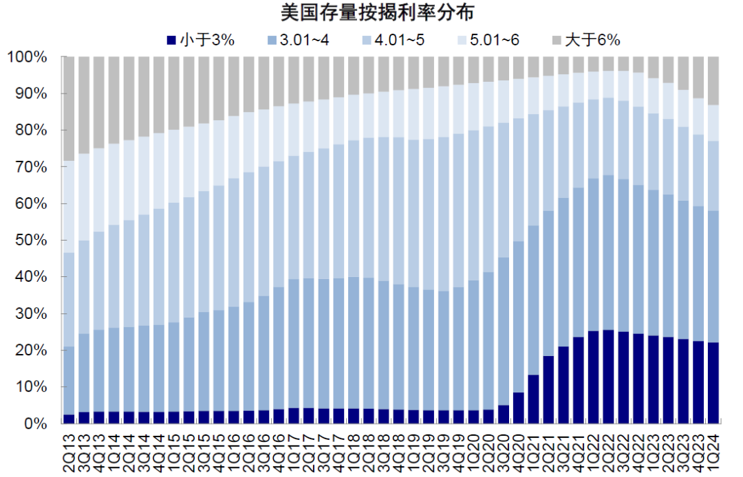 图表8:仅有13%的房贷利率在6%以上,因此当前6.1%的融资成本无法有效改善供需不匹配的现状