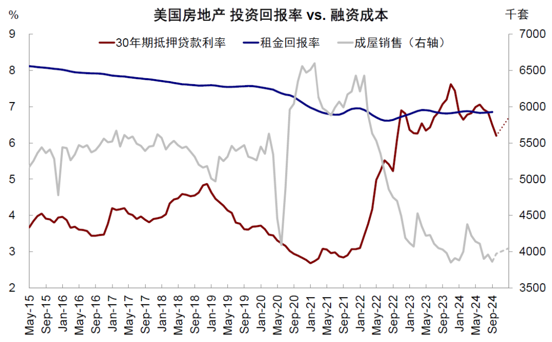 居民部门:3.2%则可以进一步激发存量需求。如上文分析,目前3.7%的美债利率已经带动30年期抵押贷款利率回落到租金回报率下方,刺激边际需求改善,但更多是吸引首次购房者。仅仅依靠投资回报率和融资成本打平无法根本性地解决成屋的供给不足,此前锁定在较低利率水平的成屋屋主出售意愿有限,导致库存处于低位,房价居高不下,进而抑制了居民的购房能力。若新增抵押贷款利率低于存量按揭,那么可以进一步的激发居民购房需求。