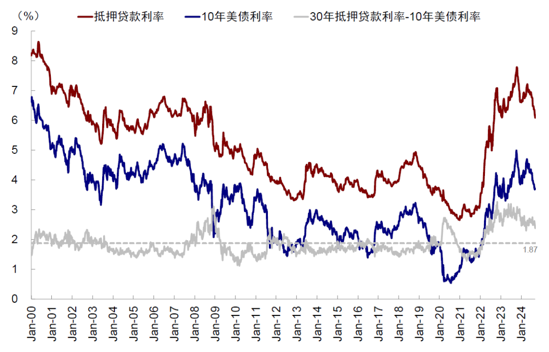 图表9:若抵押贷款利率回落到5%,对应10年美债利率在3.2%左右