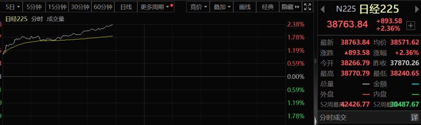 虽然隔夜美股表现一般,但今早的亚太市场是一路狂飙。日经225指数和韩国KOSPI指数涨幅皆一度超过1.7%,韩国KOSPI2000涨幅更是一度超过2.3%。从消息面来看,亦是有显著利好来袭。