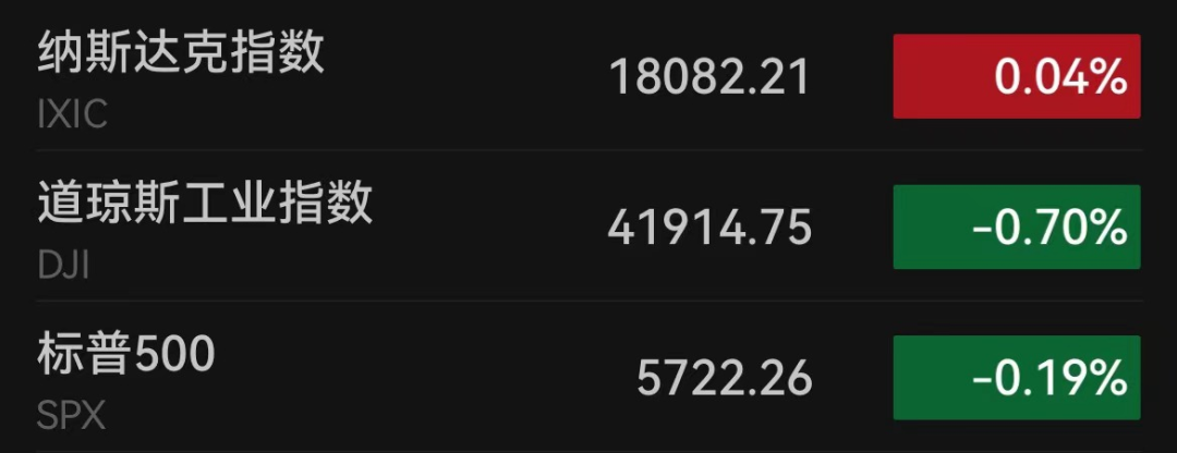 当地时间9月25日周三,美股三大股指涨跌不一。截至收盘,道指跌293.47点,跌幅为0.70%,报41914.75点;纳指涨7.69点,涨幅为0.04%,报18082.21点;标普500指数跌10.67点,跌幅为0.19%,报5722.26点。