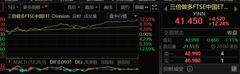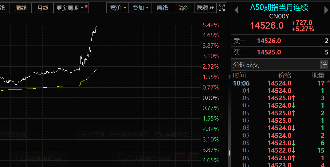 值得注意的是,富时中国A50指数涨幅亦一度扩大至5%以上。