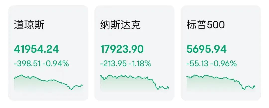截至收盘,标普500收跌55.13点,跌幅为0.96%;道指收跌398.51点,跌幅为0.94%;纳指收跌213.95点,跌幅为1.18%。