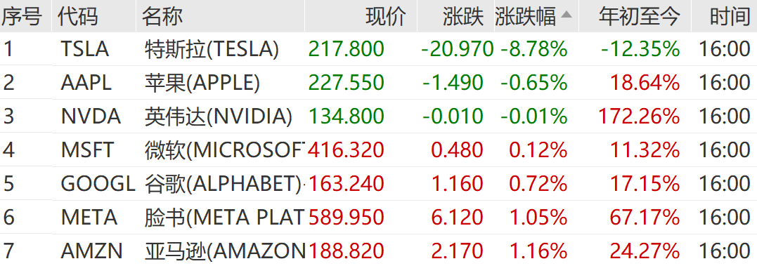 10月11日,特斯拉跌幅在科技股七巨头(Magnificent 7)中最大。