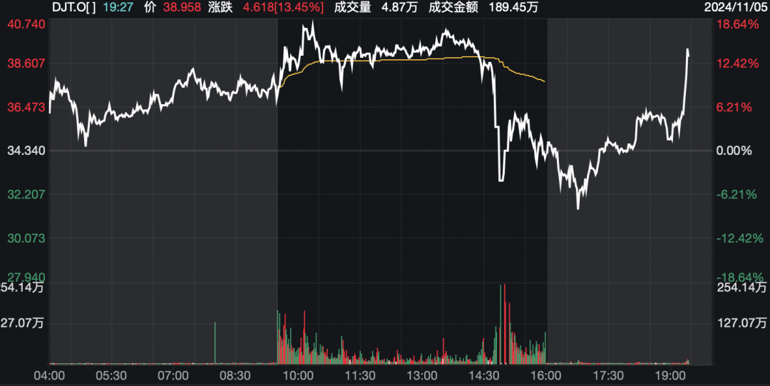 特朗普媒体科技集团巨震。当天盘初,该股大幅高开,一度上涨超过8%,但临近尾盘急跌并数次触发熔断,最终收跌0.9%。