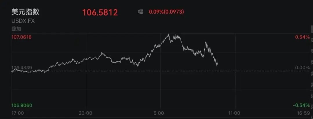 美元指数延续涨势,盘中一度跨过107关口,维持在两年来高点附近。