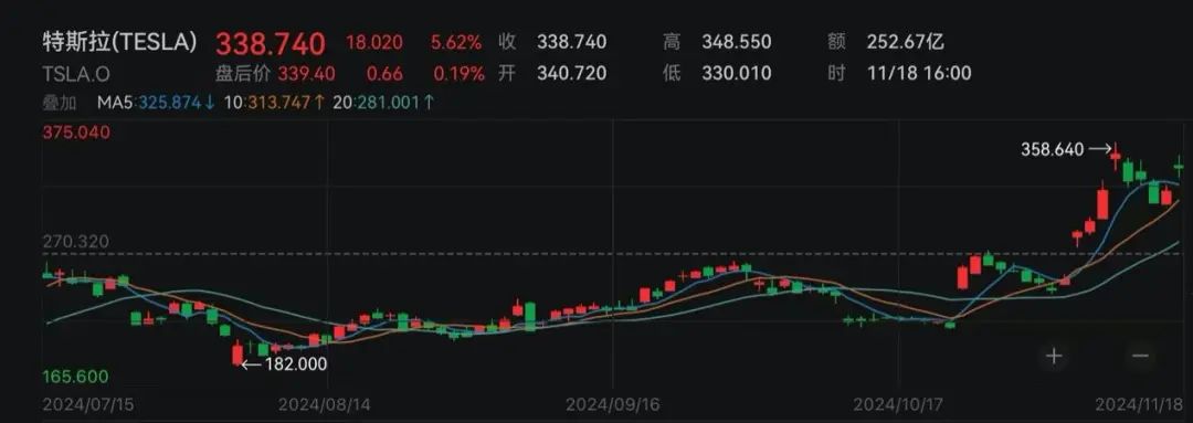 纳指结束4连跌,科技板块表现强势。特斯拉涨超5%,据报道,特朗普的过渡团队告诉顾问,他们计划将完全自动驾驶汽车的联邦框架作为交通部的优先事项之一。英伟达跌超1%,本周三将公布第三季度财报,分析师预计其第三季度营收同比增长82.8%,达到331.3亿美元,但增速将为六个季度以来最低。特朗普媒体科技涨超16%,美股Bakkt大涨超160%。据报道,特朗普旗下的社交媒体公司正就收购洲际交易所旗下的加密货币交易平台Bakkt进行深入谈判。