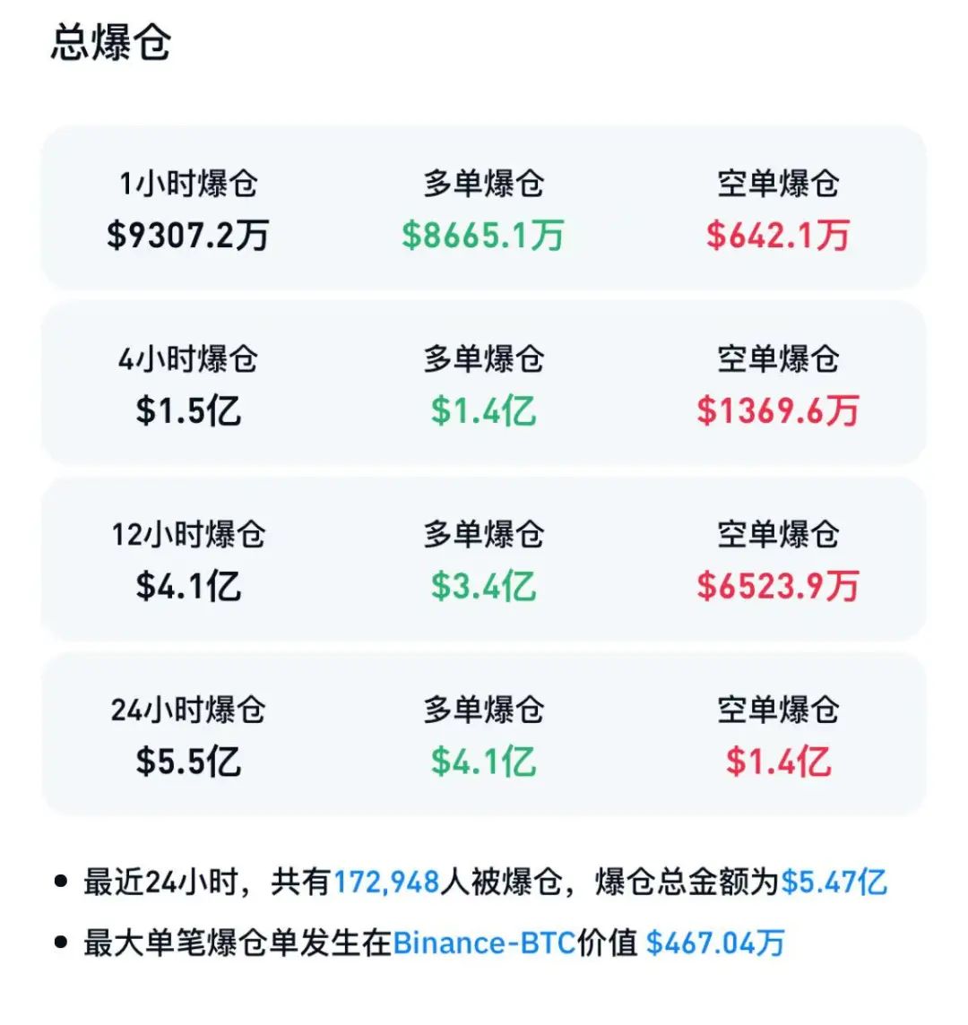 最近24小时内,加密货币市场有超过17万人爆仓,爆仓总金额为5.47亿美元。