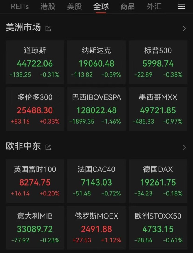 当地时间11月27日,美国三大股指高开低走均小幅收跌。截至收盘,道指跌0.31%,盘初再度刷新历史新高后转跌,标普500指数、纳指均低开低走,两者分别下跌0.38%、0.59%。