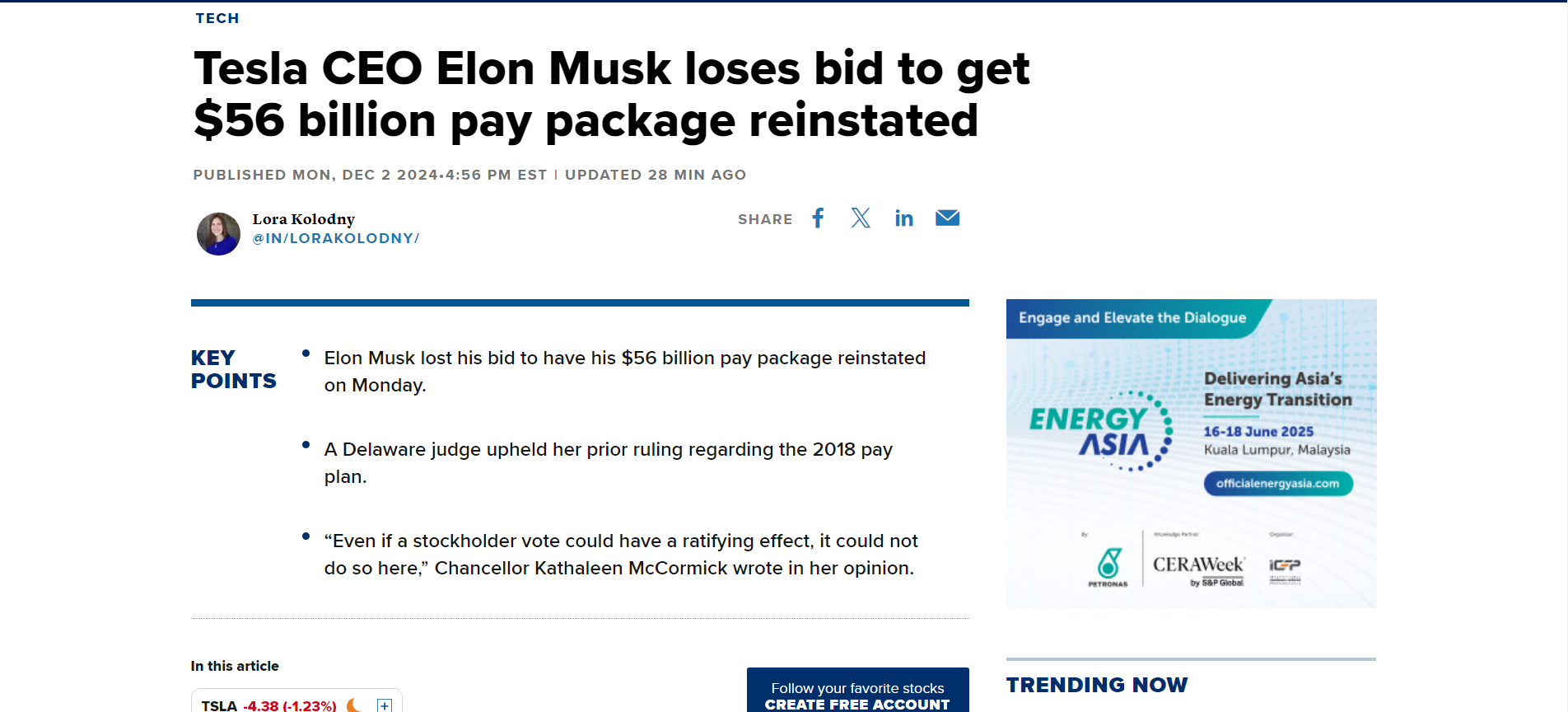 麦考密克的裁决推翻了美国企业高管有史以来最高的薪酬计划,如果上诉失败,这可能会大幅削减马斯克的财富,并对他公司的未来产生影响。据悉,马斯克可以向特拉华州最高法院上诉该决定。