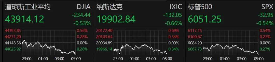 截至收盘,道指跌0.53%,纳指跌0.66%,标普500指数跌0.54%。美国11月PPI涨幅超预期,显示通胀升温。欧洲央行今年第四次降息。