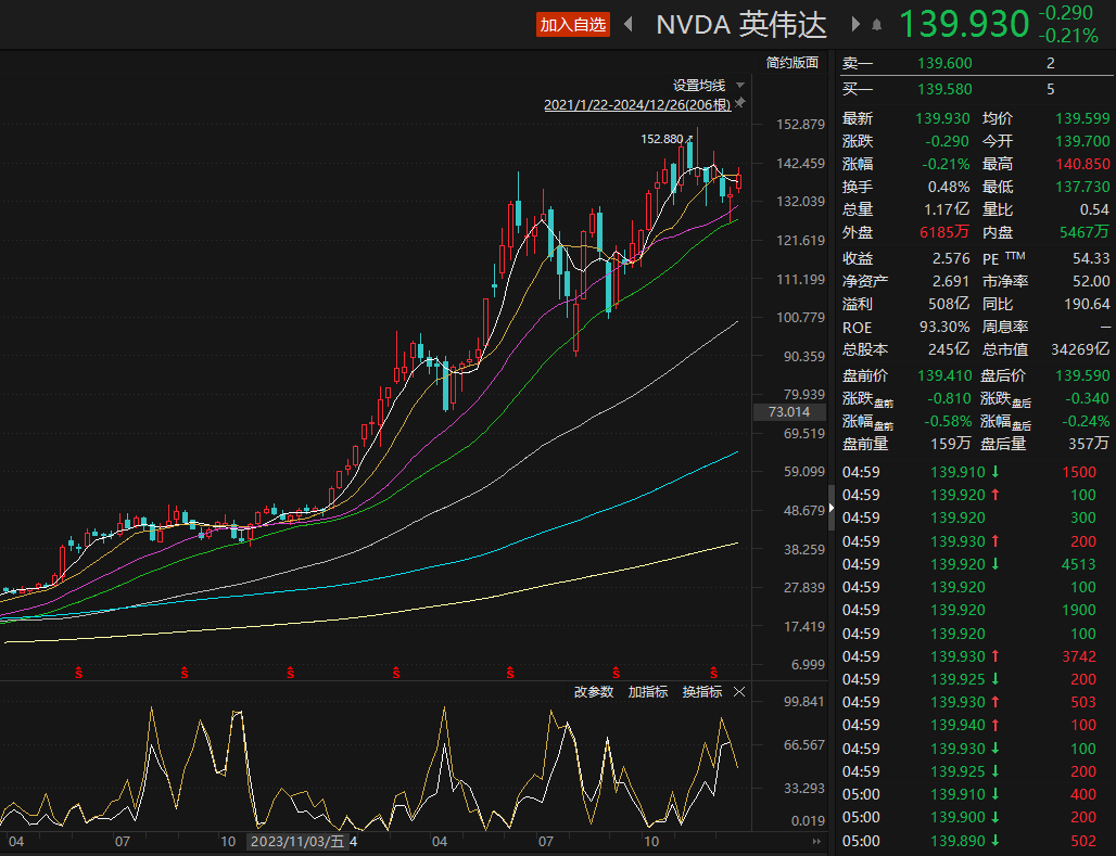 数据显示,今年以来,散户投资者合计净买入英伟达股票298亿美元(约合2175亿元人民币),使得该公司成为2024年美股散户投资者净买入最多的美股。截至12月26日,英伟达年内涨幅高达182.64%,最新市值超过3.43万亿美元。