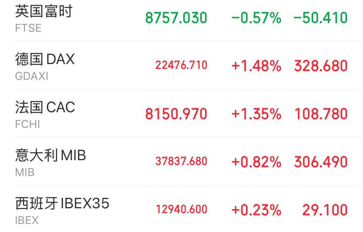 欧洲市场方面,多国股市均上涨。其中,德国DAX指数、法国CAC40指数涨超1%。
