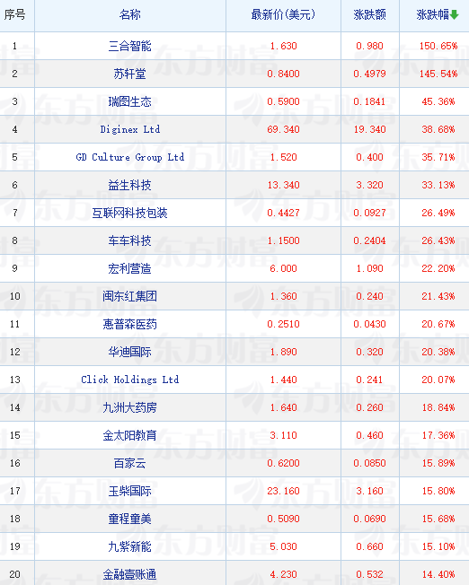 领涨中概股列表: