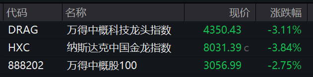 中概股表现疲软,纳斯达克中国金龙指数跌3.84%。