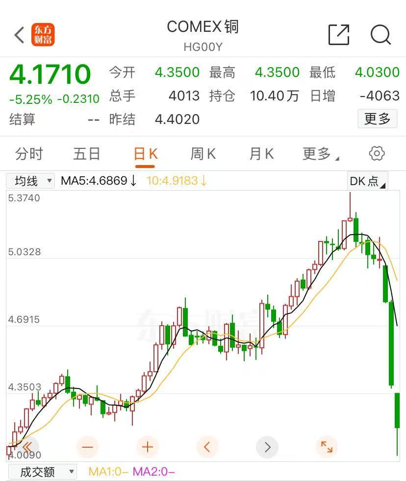 纽约期铜重挫逾8%,截至发稿,跌超5%。