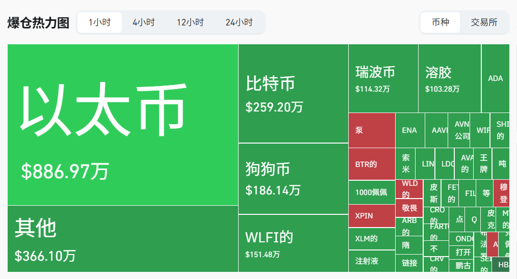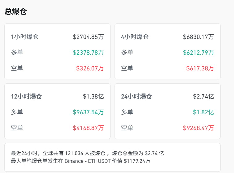 Coinglass网站数据显示,过去24小时内,虚拟货币共有超12万人爆仓。