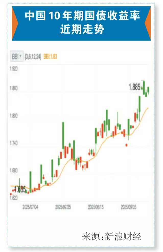 降息意味着债券价格上涨。9月18日,美国10年期国债收益率下跌至4.06%附近,由于债券的收益率和价格成反比,这也意味着,债券价格走高,债市走强。与此同时,中国10年期国债收益率微上行至1.85%。