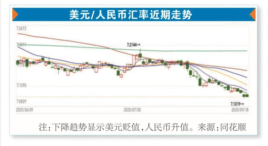 受全球资金加码中国资产配置、以及美元走弱等多重因素影响,人民币汇率明显走强。9月18日,在岸和离岸人民币对美元汇率盘中均升值至7.10附近,创下去年11月以来的新高。王青分析,短期内人民币汇率处于偏强运行状态;预计人民币汇率仍将以稳为主,保持与美元反向波动、波幅较小的运行格局,快速单边升值或大幅贬值的风险都不大。