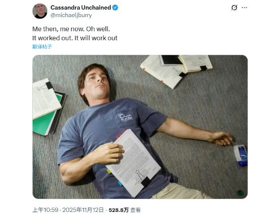 此外,他再度在社交媒体上发布了一张“大空头”的剧照,隐喻“此时此刻正如彼时彼刻”,而这一切终将水落石出。