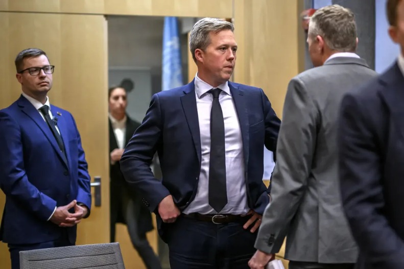 美国陆军部长丹尼尔·德里斯科尔(中)在日内瓦与乌克兰方面举行闭门会谈后。