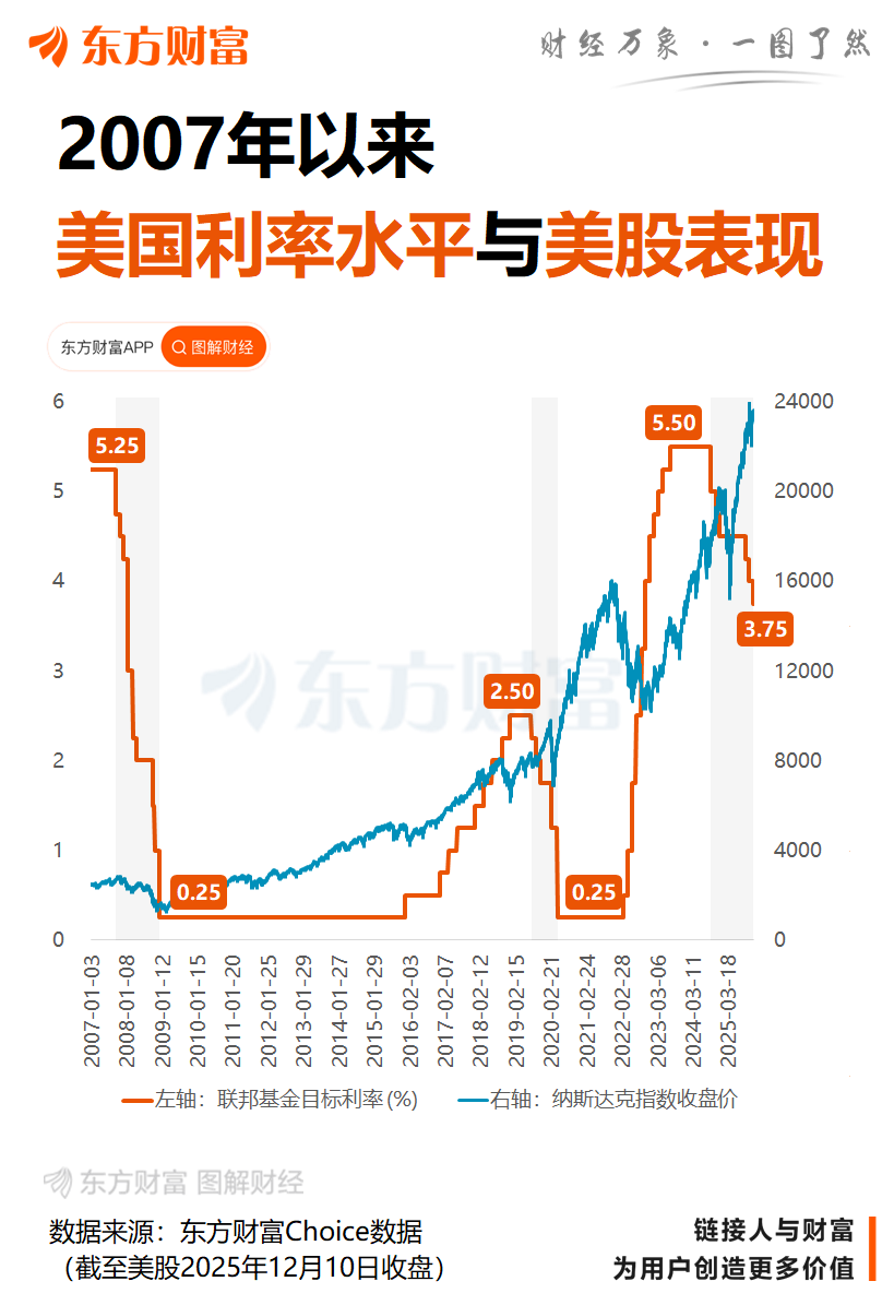 北京时间周四凌晨03:00,美联储联邦公开市场委员会(FOMC)发布了最新的利率决议,宣布降息25个基点,将联邦基金利率目标区间降至3.50%-3.75%,符合市场“鹰派降息”预期。